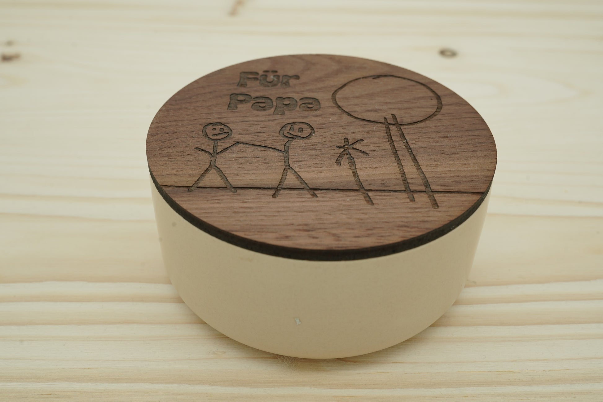 So besonders wie die kleinen Künstler selbst: In den Holzdeckel dieser liebevoll handgefertigten Jesmonite-Dose wird die Originalzeichnung deines Kindes eingraviert – ein Erinnerungsstück, das direkt ans Herz geht. Auch erhältlich ohne Zeichnung, nur mit Namen.
