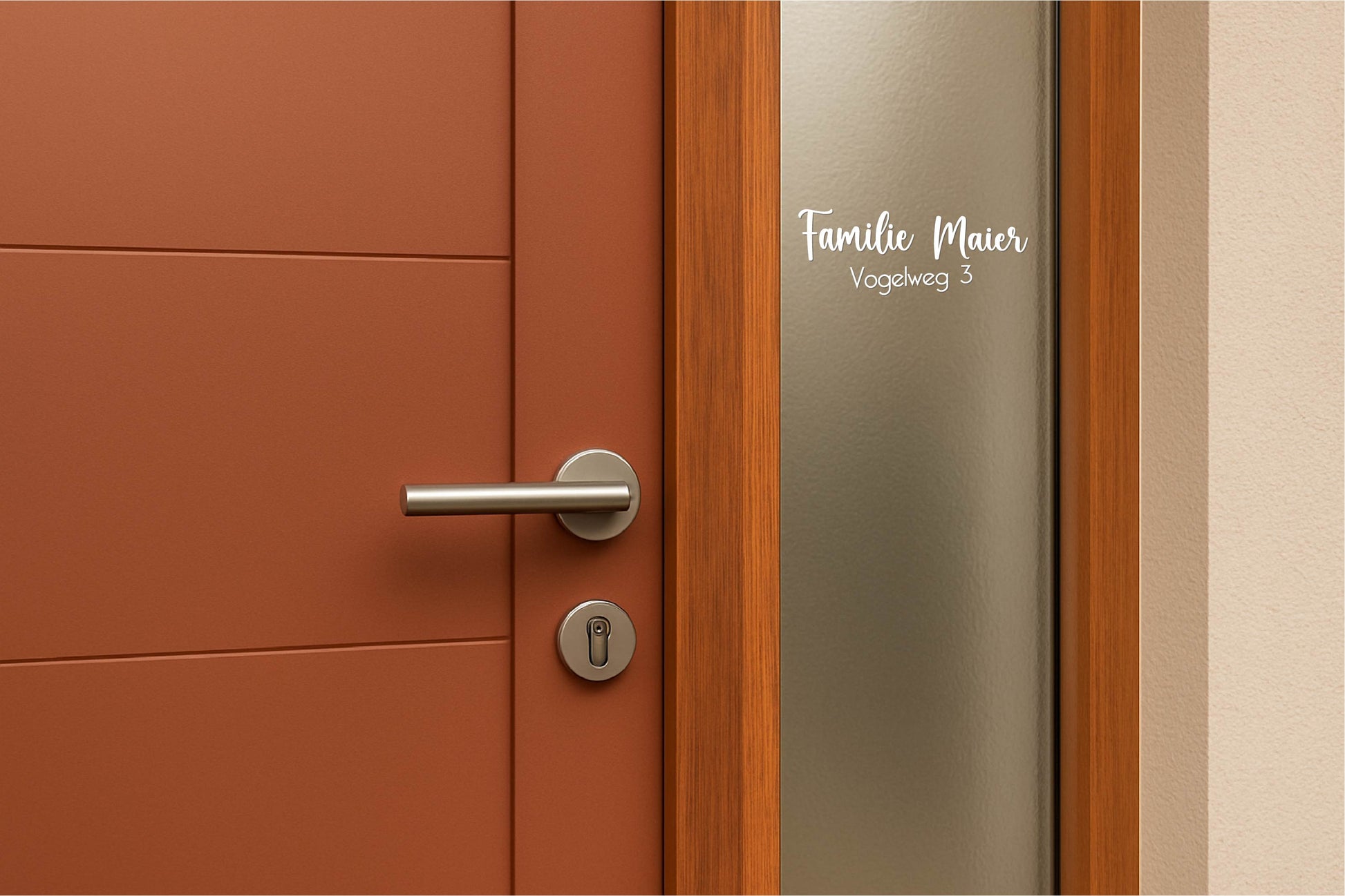 Ob Name, Adresse oder ein herzliches Willkommen, die Premium-Vinyl-Aufkleber verleihen deiner Haustür oder deinem Fenster eine individuelle, warme Note.